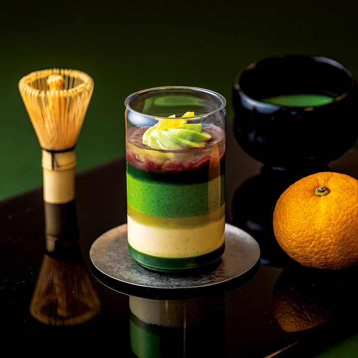 ■商品の特徴:祇園辻利(ぎおん つじり)の本格的な石臼挽き宇治抹茶を使用した「抹茶味」と、香り高くコクのあるほうじ茶を使用した「ほうじ茶味」の2種類の味わいが楽しめるおしゃれなパフェです。