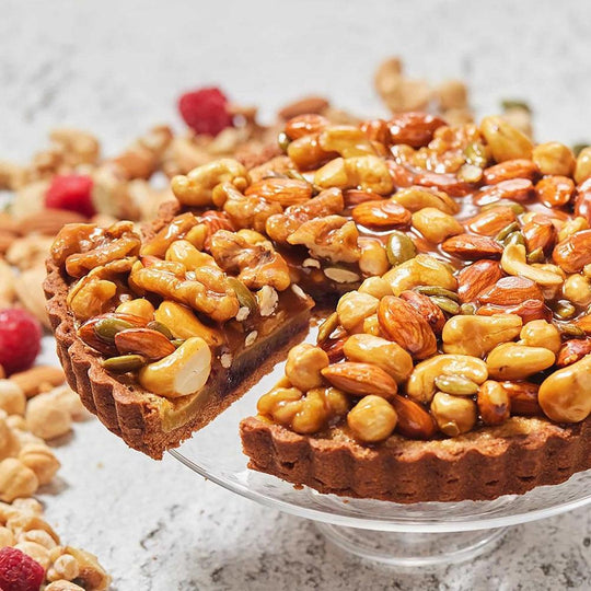 TBS「ひるおび」で紹介された「キャラメルナッツタルト」はアーモンド・カシューナッツ・ヘーゼルナッツなどナッツたっぷりのタルトでネット通販サイトからご購入可能です。